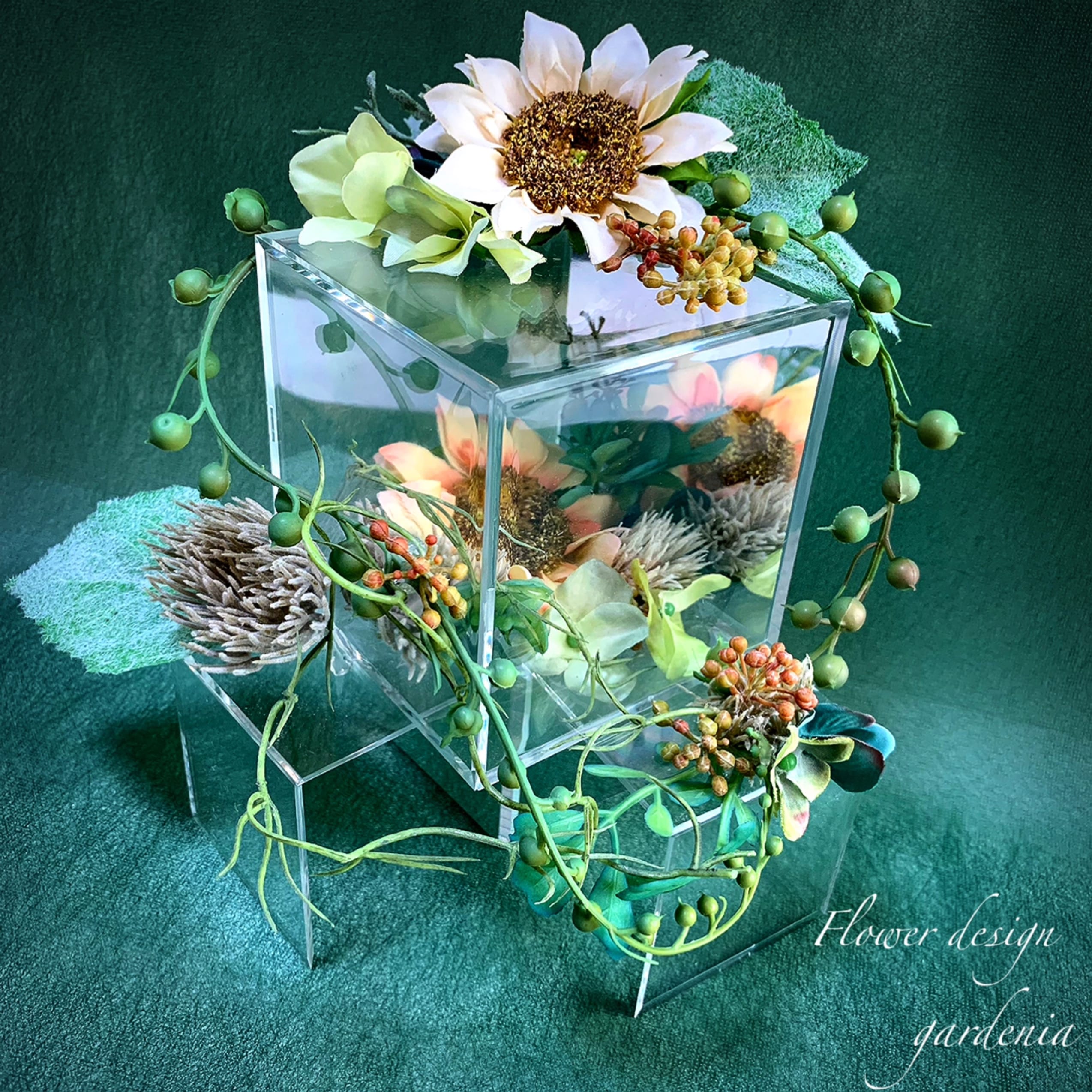 プリザーブドフラワー、アーティフィシャルフラワー、ドライフラワー、フレッシュフラワーを使用します。