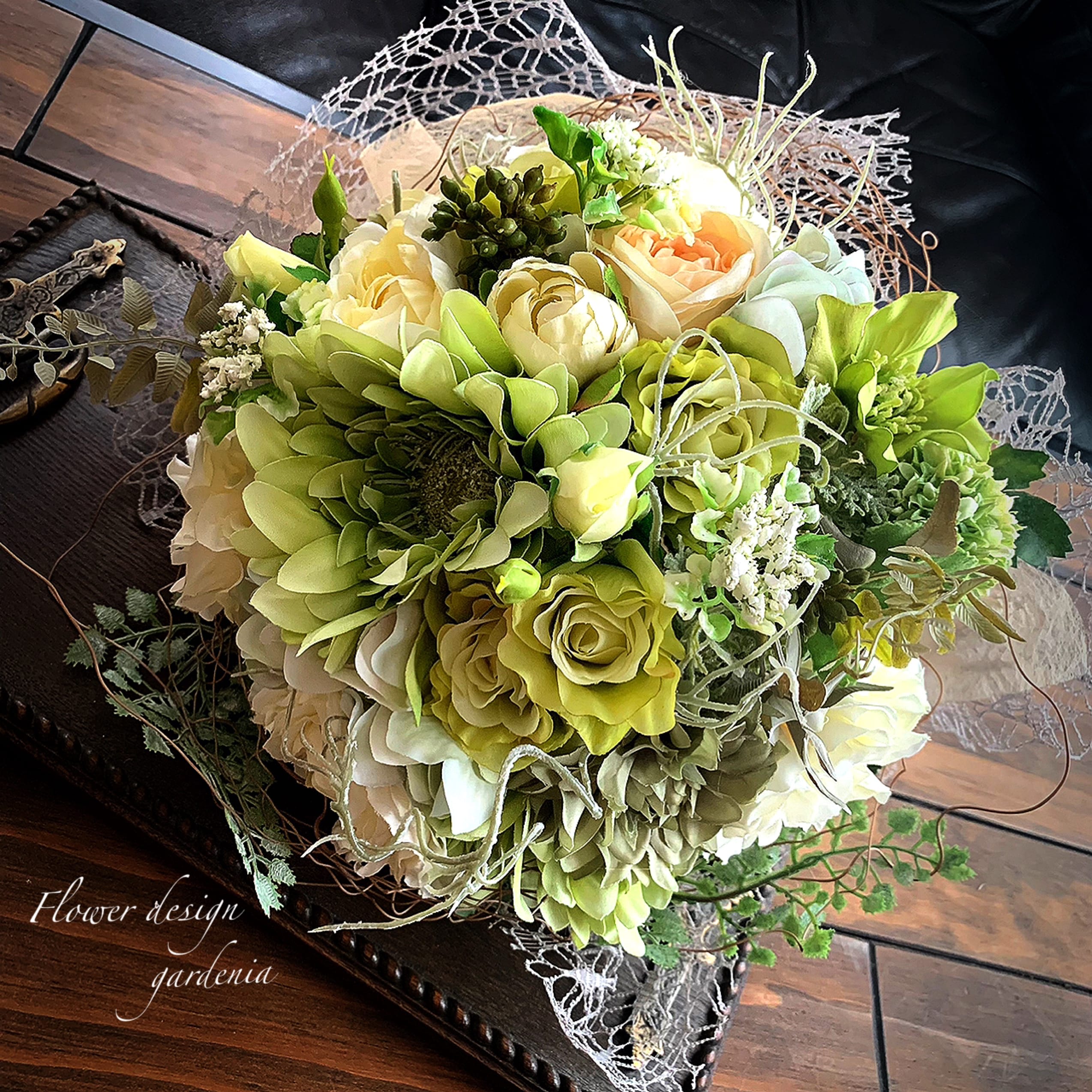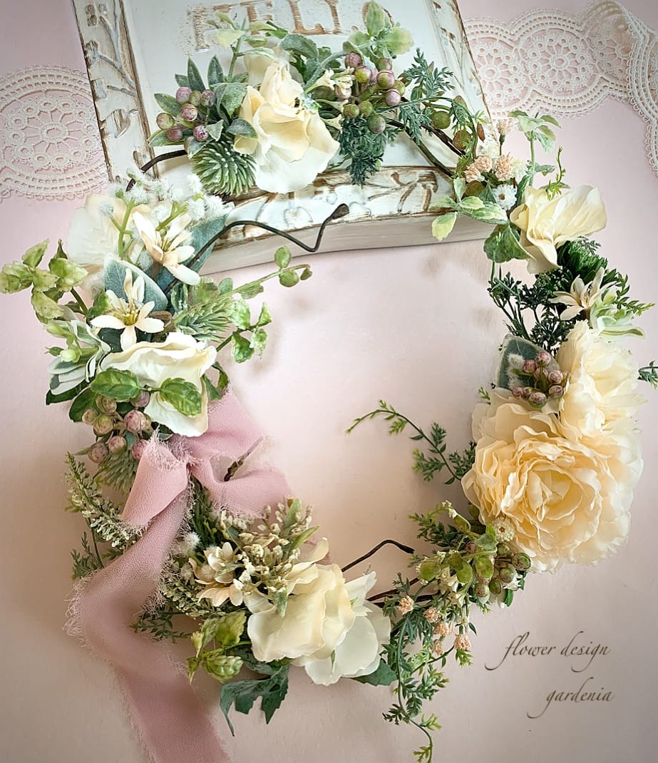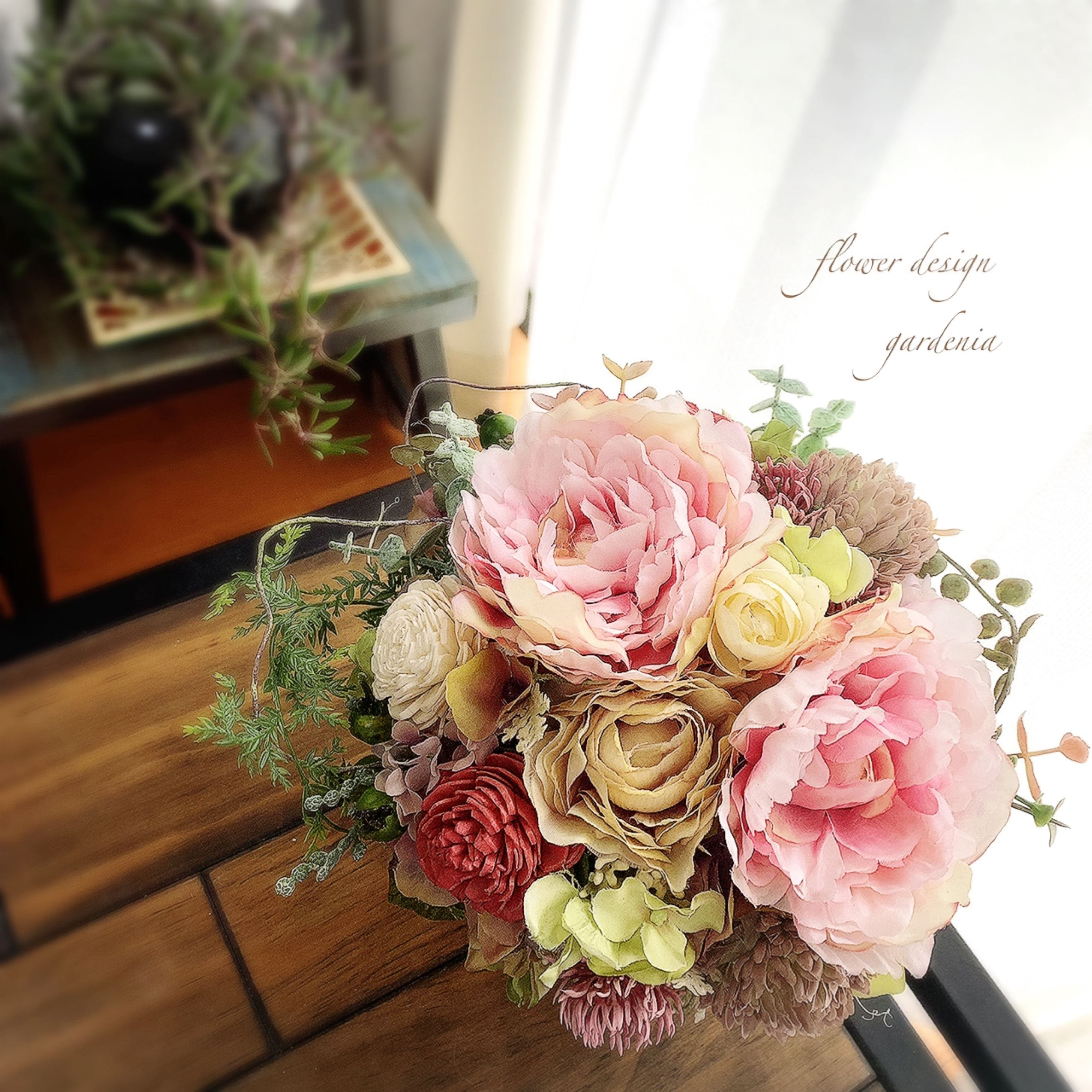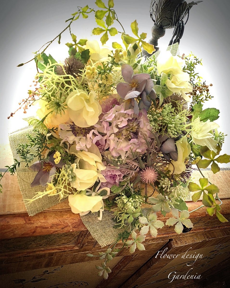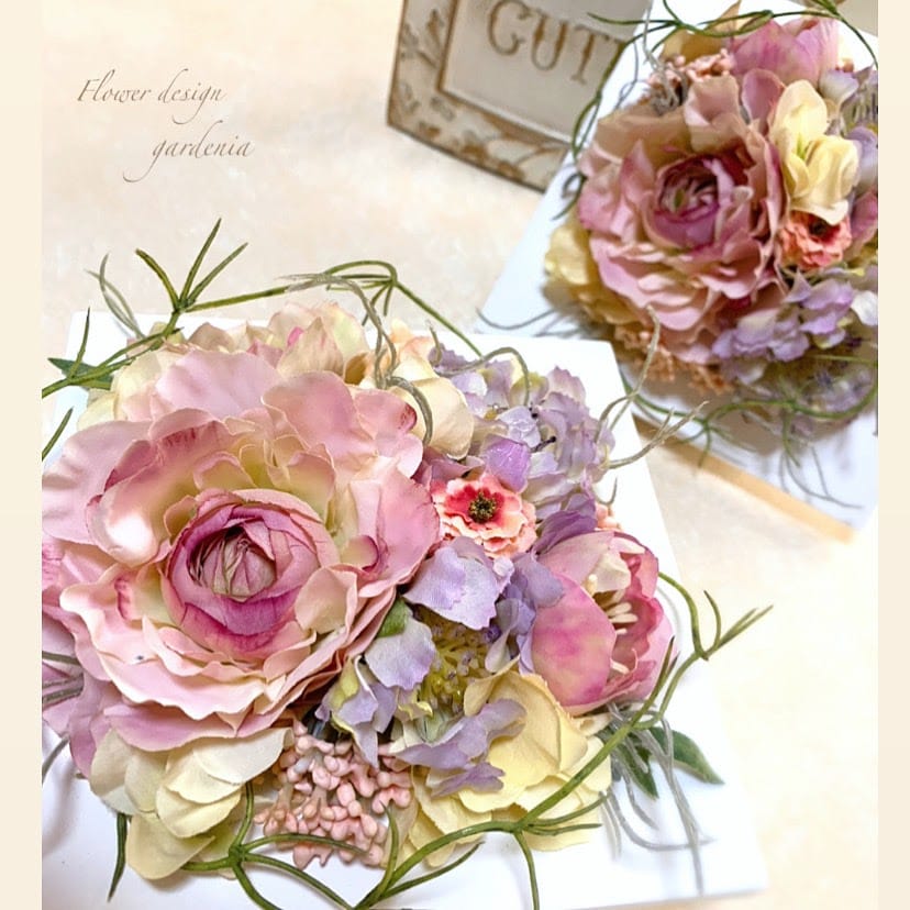 花材はアーティフィシャルフラワーやプリザーブドフラワー、ドライフラワーを使用します。